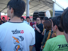 10年前は日系アメリカ人の父と日本人の母との間にサンフランシスコで生まれ、英語で教育を受けてきた私が和太鼓の演奏家として活動をしているとは正直、自分自身でさえ想像が付きませんでした。今になり、思い返せば私が変わる大きなきっかけとなったのが2004年に(財)日本太鼓連盟、及び文化庁のご支援を頂き、米国コロラド州のデンバーで渡辺洋一(太鼓集団天邪鬼代表)のアシスタントとして携わった「文化交流使」の事業だったと思います。