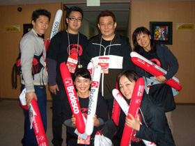 1000人太鼓演奏に先立ち、私たち天邪鬼の公演を行ったが、それを見ていたブラジル太鼓のメンバーが見送りにきてくれた。