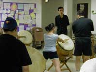 本格的にデンバー太鼓の指導が始まった。何やら期待感いっぱいの様子なのか、メンバーは落ち着かなかった。 礼とともに練習開始。